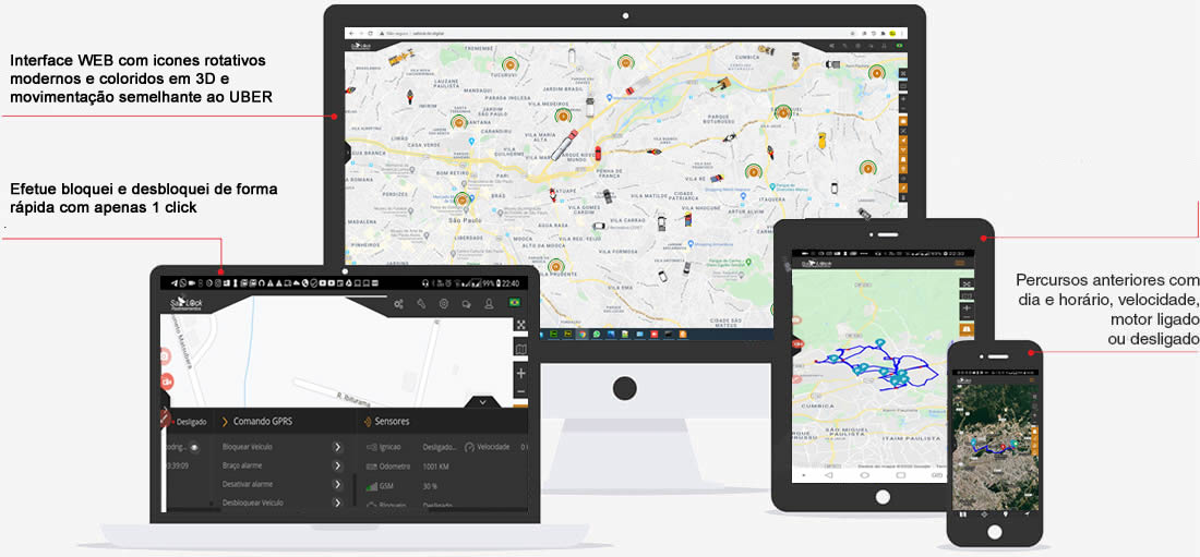 Atualização de 15/15 segundos. Visualização e acompanhamento do veiculo em tempo real e tudo numa mesma tela!